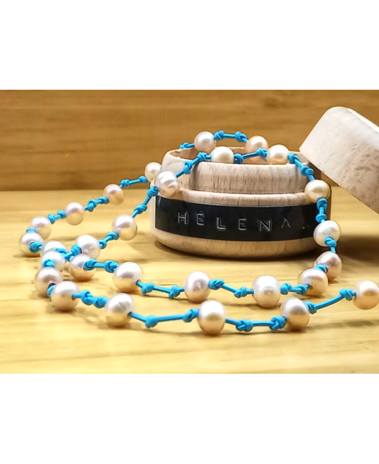 Material: GENUINO CUERO TEÑIDO 1mm, perla natural cultivada 6-7mm y acero.