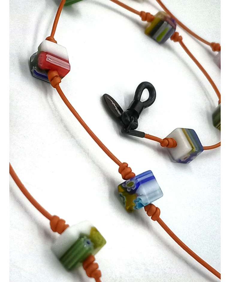 DETALLES CORDÓN CRISTAL MILLEFIORI EN CUERO NARANJA PARA GAFAS